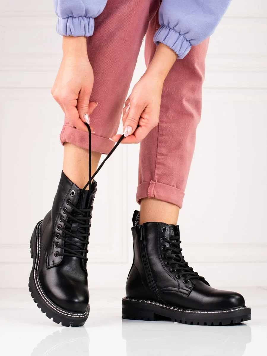 Pěkné černé kotníčkové boty dámské bez podpatku