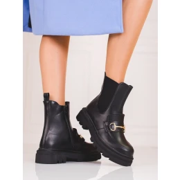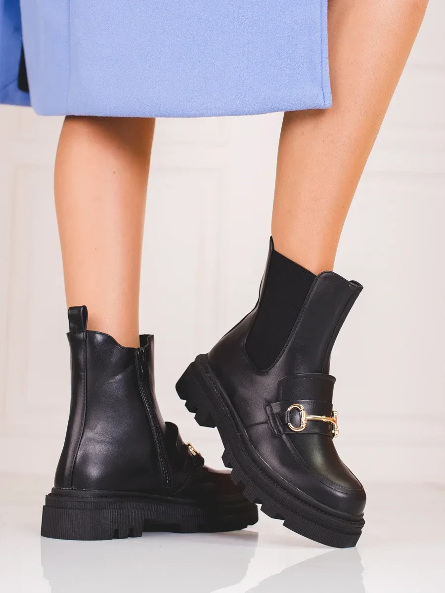 Pěkné dámské černé kotníčkové boty na plochém podpatku