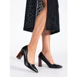 Pěkné dámské černé lodičky na širokém podpatku