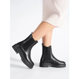 Pěkné dámské kotníčkové boty černé na plochém podpatku