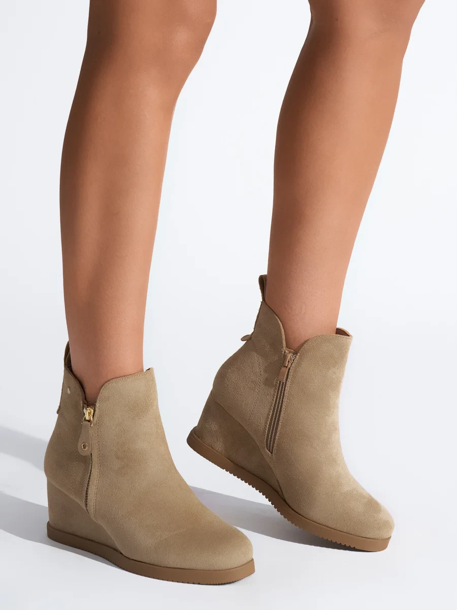 Pěkné hnědé kotníčkové boty dámské na klínku