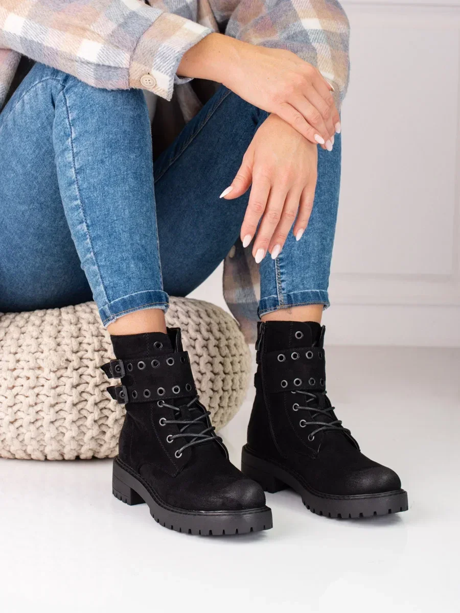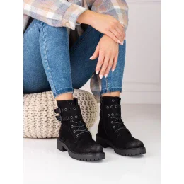 Pěkné kotníčkové boty černé dámské na plochém podpatku