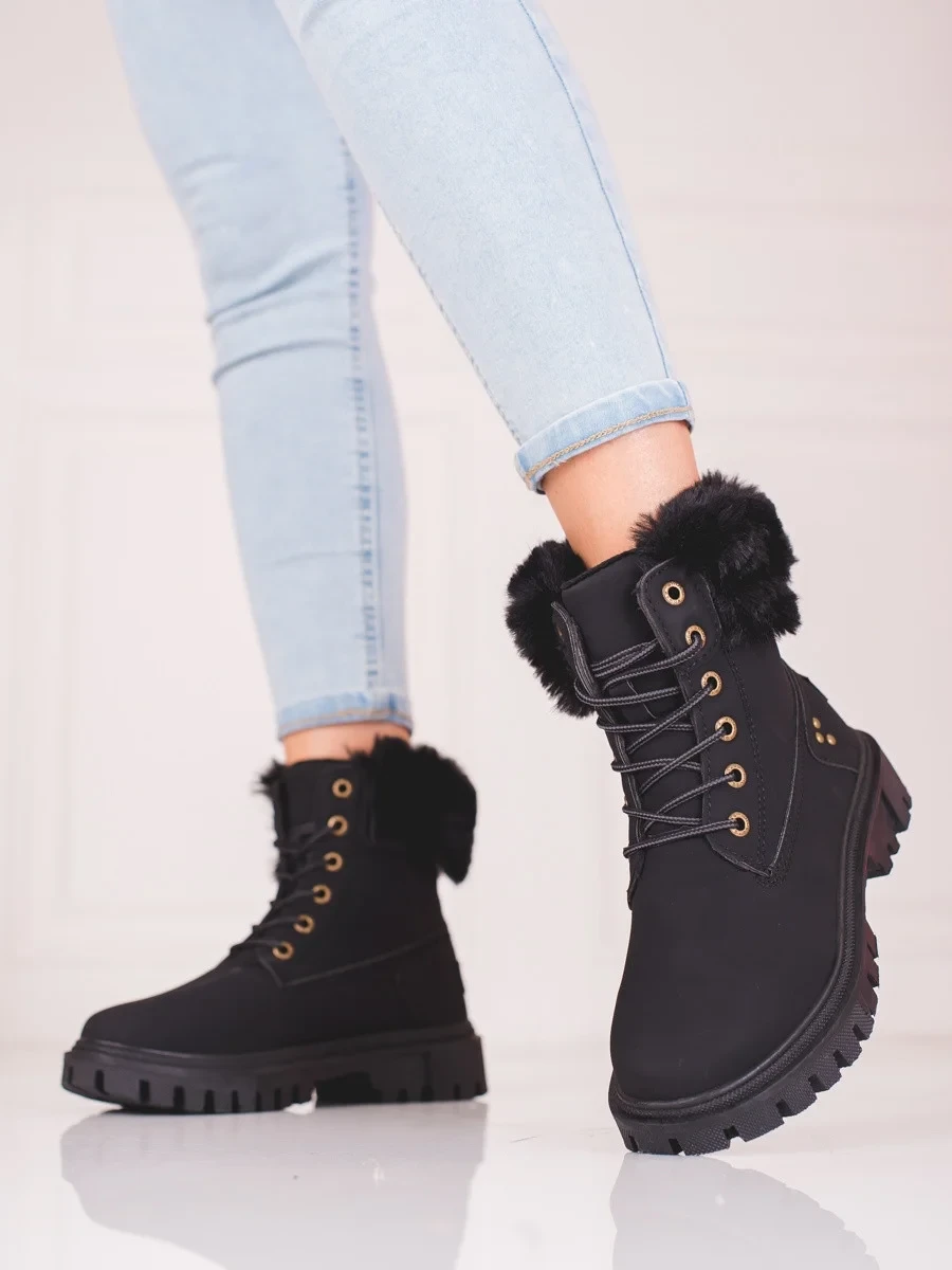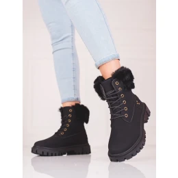 Pěkné kotníčkové boty černé dámské na plochém podpatku