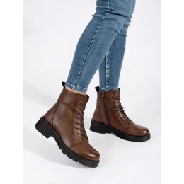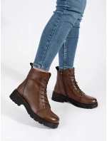 Kožené dámské kotníčkové boty na platformě vyhřívané Vinceza 66838 béžové