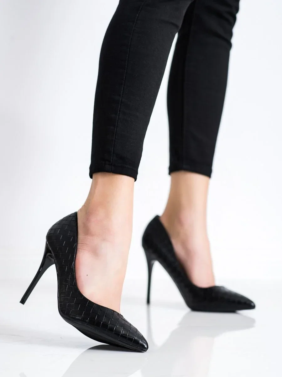 Pěkné lodičky černé dámské na jehlovém podpatku
