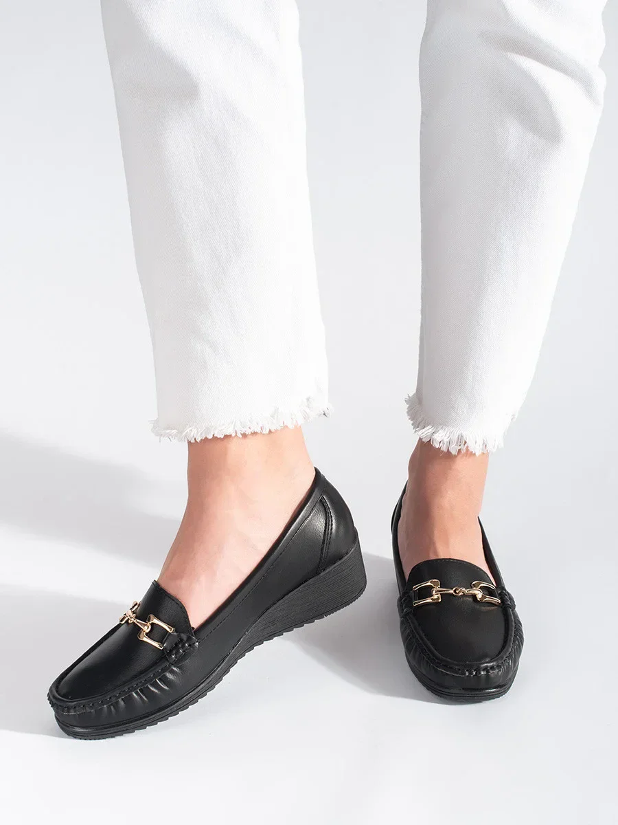 Pěkné mokasíny dámské černé na klínku