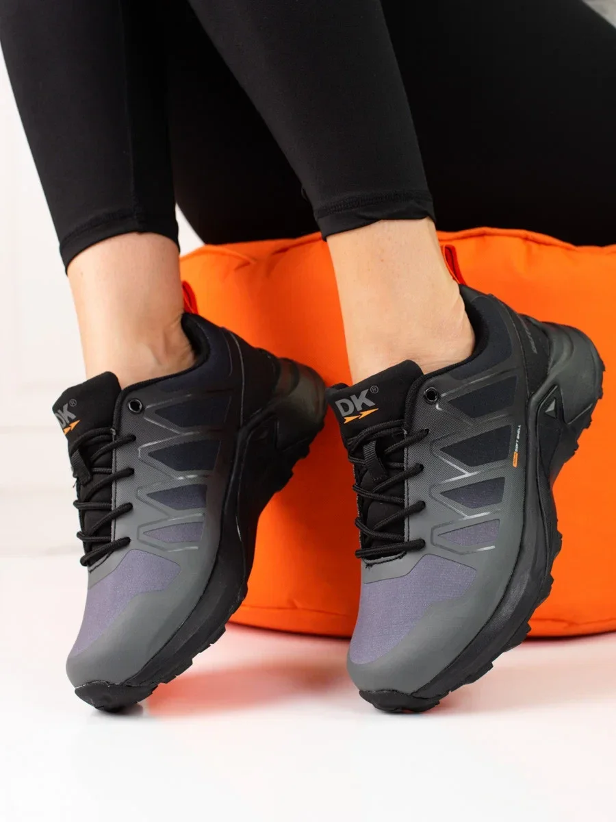 Pěkné trekingové boty dámské šedo-stříbrné bez podpatku