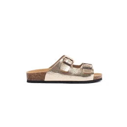 Pěkné zlaté dámské nazouváky na plochém podpatku