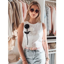 Toto stylové tričko bez ramínek s trojrozměrnými květy je určeno ženám, které ocení jedinečné detaily. Všité aplikace mu dodávají originální nádech, zatímco třpytivé zirkony podtrhují jeho elegantní styl. Lehký materiál a vypasovaný střih zajišťují celodenní pohodlí a dokonale se hodí k ležérním i sofistikovanějším outfitům.