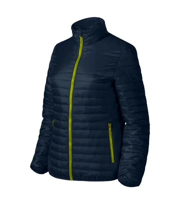 sbalitelná do vnitřní kapsy lehký hřejivý materiál členěný prošíváním střih tvarovaný bočními díly celopropínací kostěný zip s krytkou brady kapsy s kostěným zipem vnitřní kapsa na suchý zip vstup pro branding v bočním švu podšívky lemování elastickým proužkem