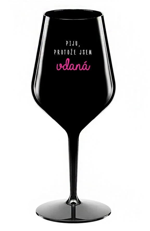 PIJU, PROTOŽE JSEM VDANÁ - černá nerozbitná sklenice na víno 470 ml