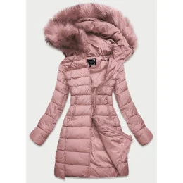 Prošívaná dámská bunda ve starorůžové barvě s kapucí (7754BIG)