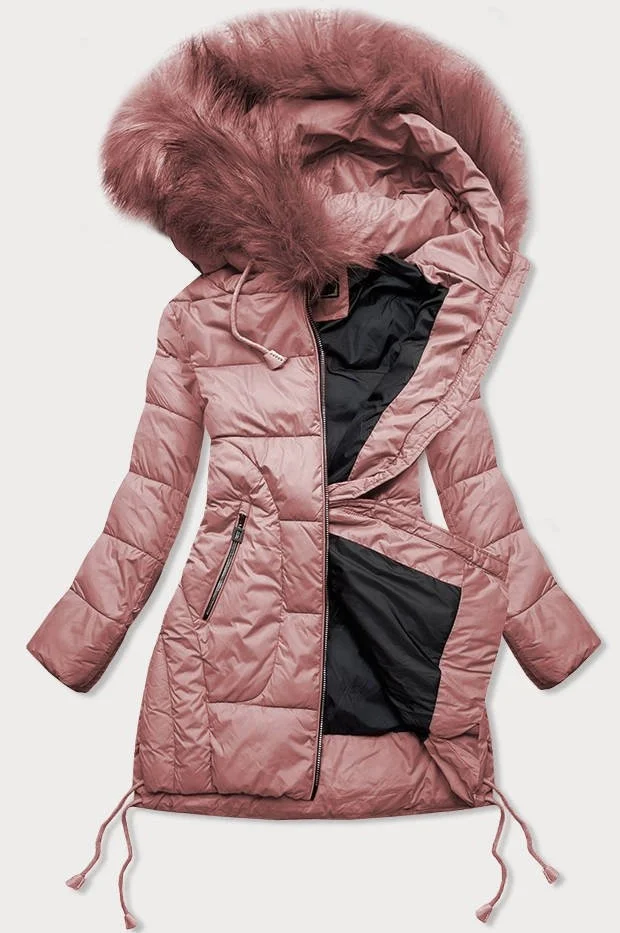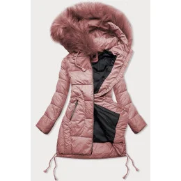 Dámská prošívaná zimní bunda ve starorůžové barvě s kapucí (7690)