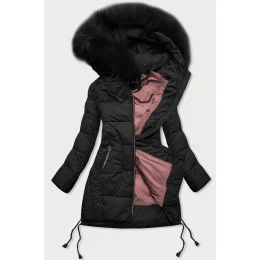 Černá prošívaná dámská zimní bunda s kapucí (7690)