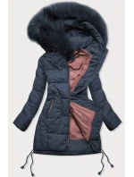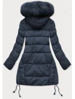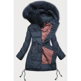 Tmavě modrá dámská prošívaná zimní bunda s kapucí (7690)