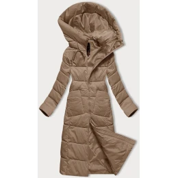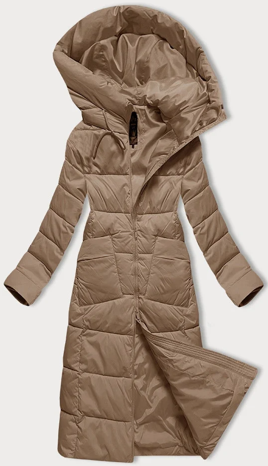 Tmavě béžová dámská prošívaná dlouhá zimní bunda Libland (7767)