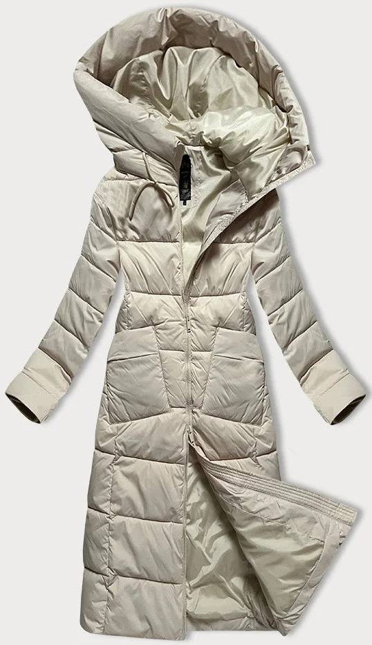 Světle béžová dlouhá dámská prošívaná zimní bunda Libland (7767)