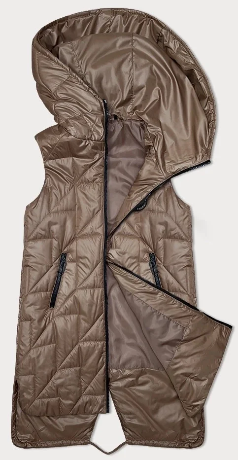 Tmavě béžová prošívaná dámská vesta s asymetrickou spodní částí S'West (B8237-101)