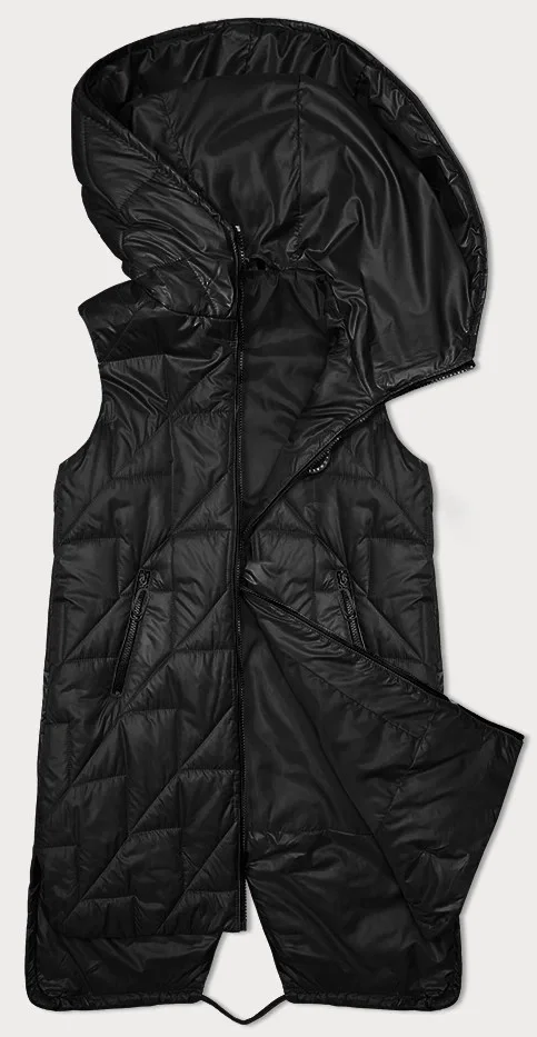 Černá prošívaná dámská vesta s asymetrickou spodní částí S'West (B8237-1)
