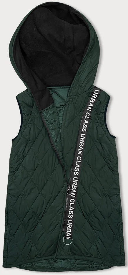 Prošívaná dámská vesta v army barvě s ozdobnou páskou (16M9118-136)