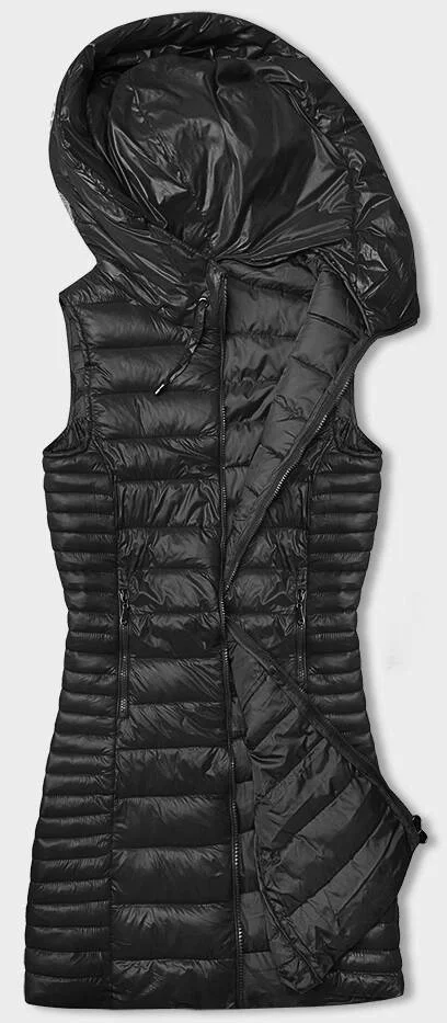 Černá prošívaná vesta s kapucí (16M9113-392)