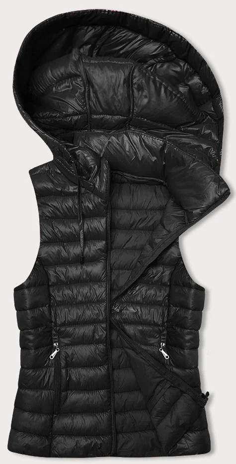 Černá prošívaná vesta s odepínací kapucí J Style (16M9151-392)