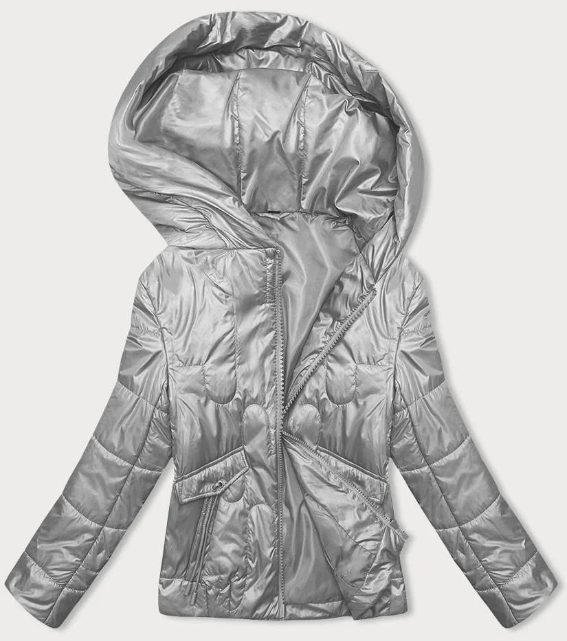 Šedá krátká dámská prošívaná bunda (B8185-9)
