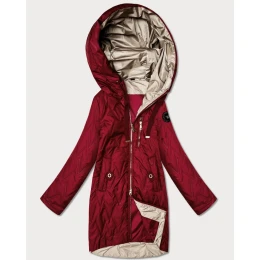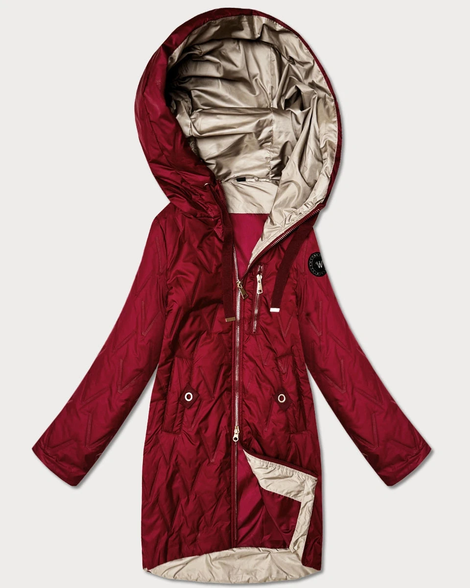 Pikowana kurtka damska z asymetrycznym dołem Goodlookin ciemny czerwony (B8592-27)