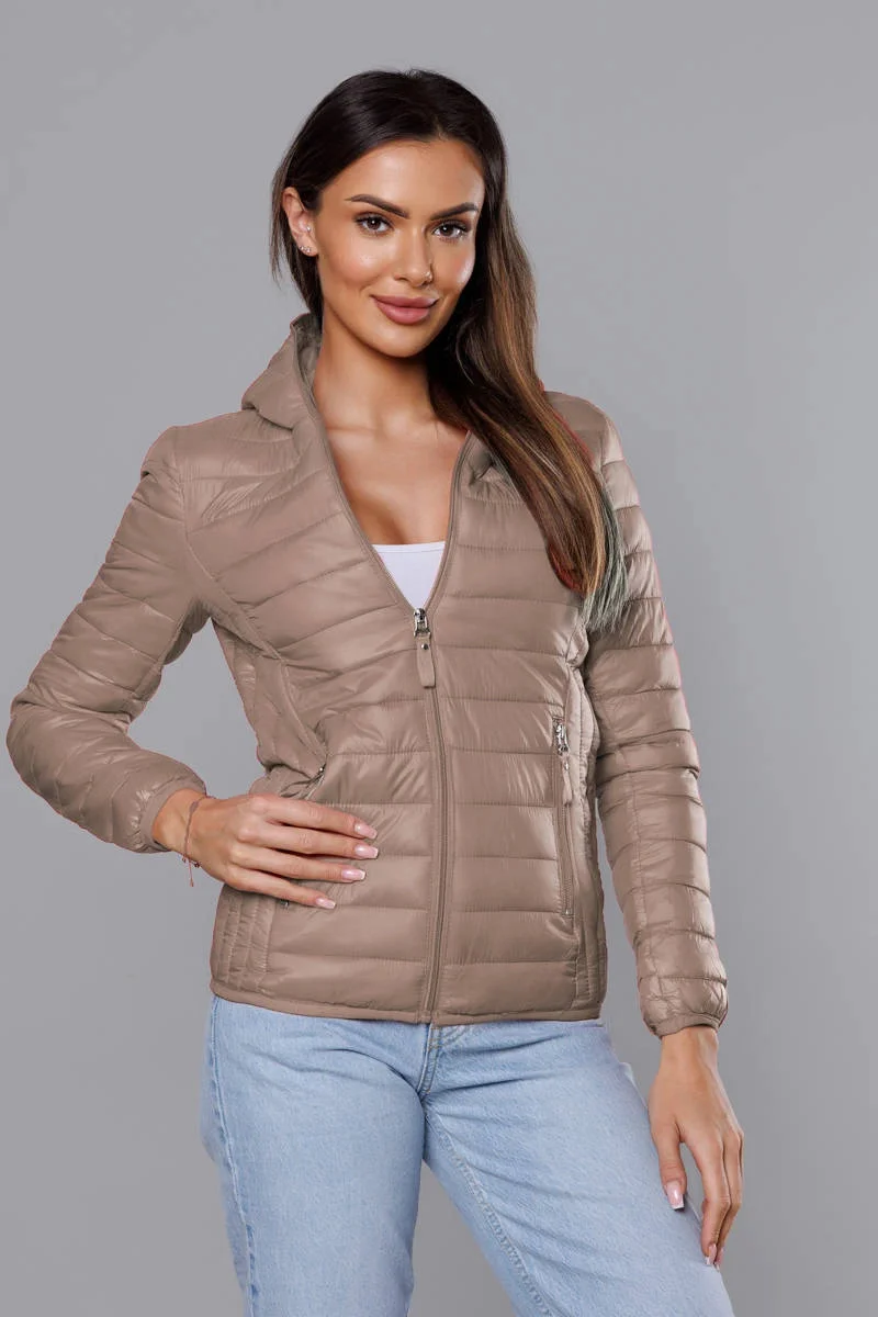 Béžová dámská prošívaná bunda s kapucí (B0123-46)