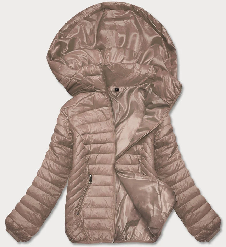 Prošívaná béžová dámská bunda s kapucí (B0124-46)