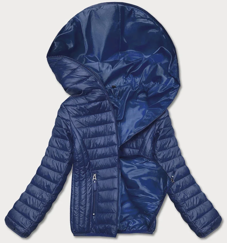 Modrá dámská prošívaná bunda s kapucí (B0123-72)