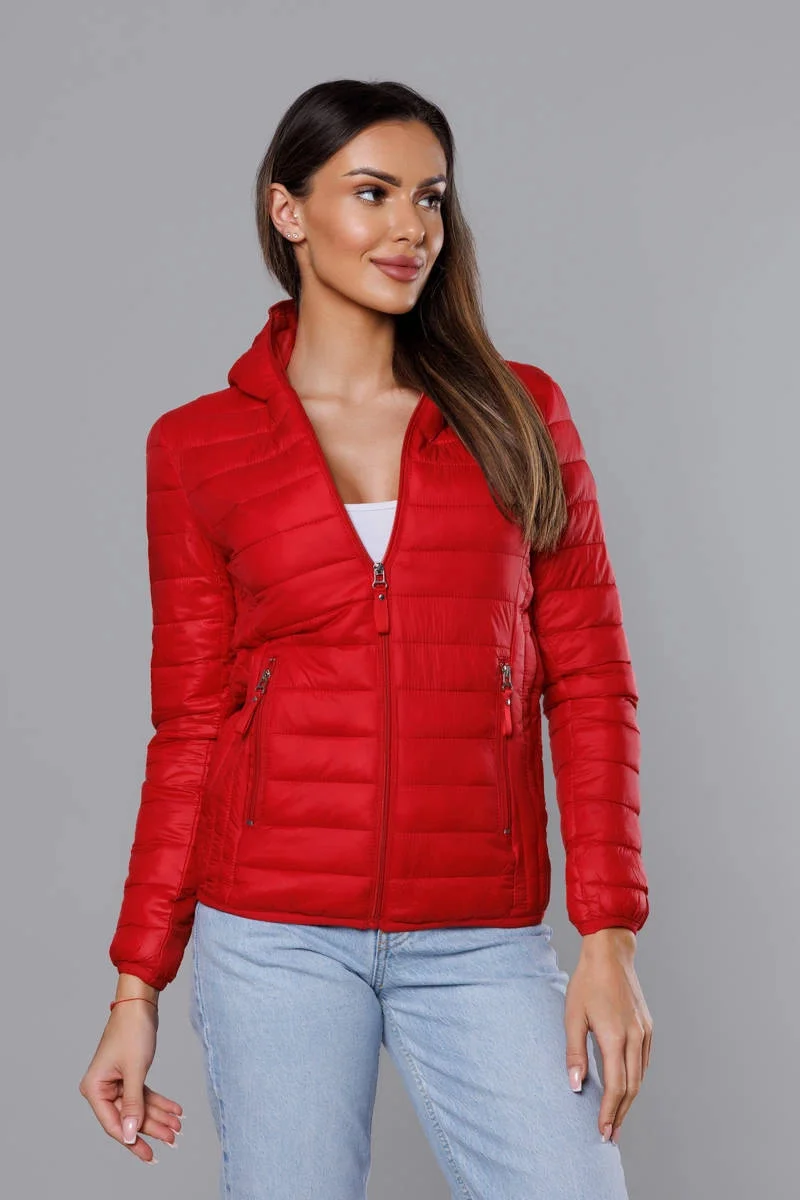 Pikowana kurtka damska z kapturem czerwona (B0123-4)