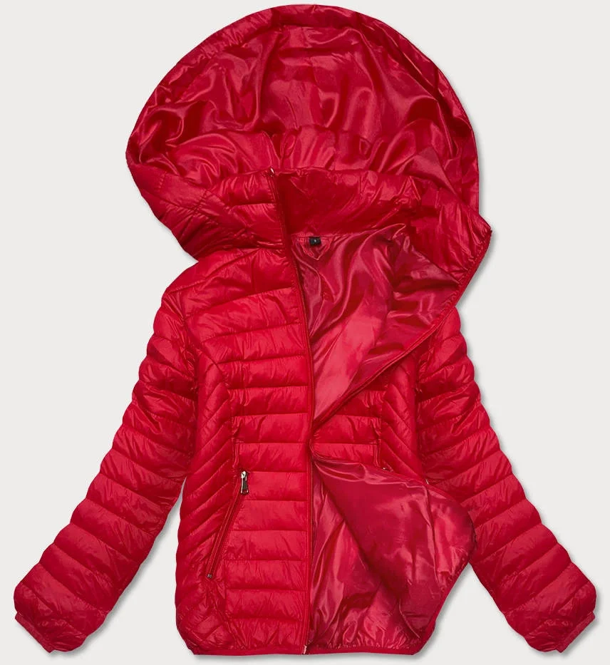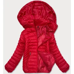 Červená prošívaná dámská bunda s kapucí (B0124-4)