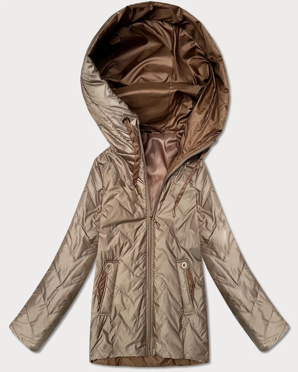 Pikowana kurtka damska z kapturem Goodlookin beżowa (B8596-12)