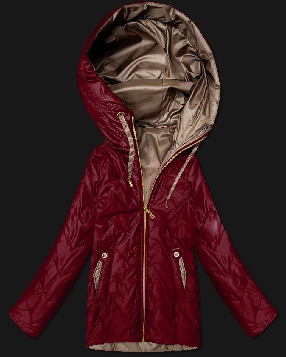Pikowana kurtka damska z kapturem Goodlookin ciemny czerwony (B8596-27)