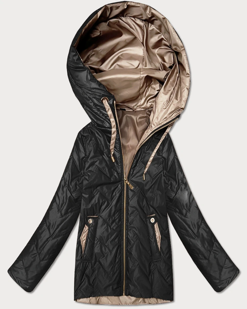 Pikowana kurtka damska z kapturem Goodlookin czarna (B8596-1)
