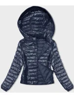 Tmavě modrá dámská prošívaná bunda s kapucí (16M9105-215)