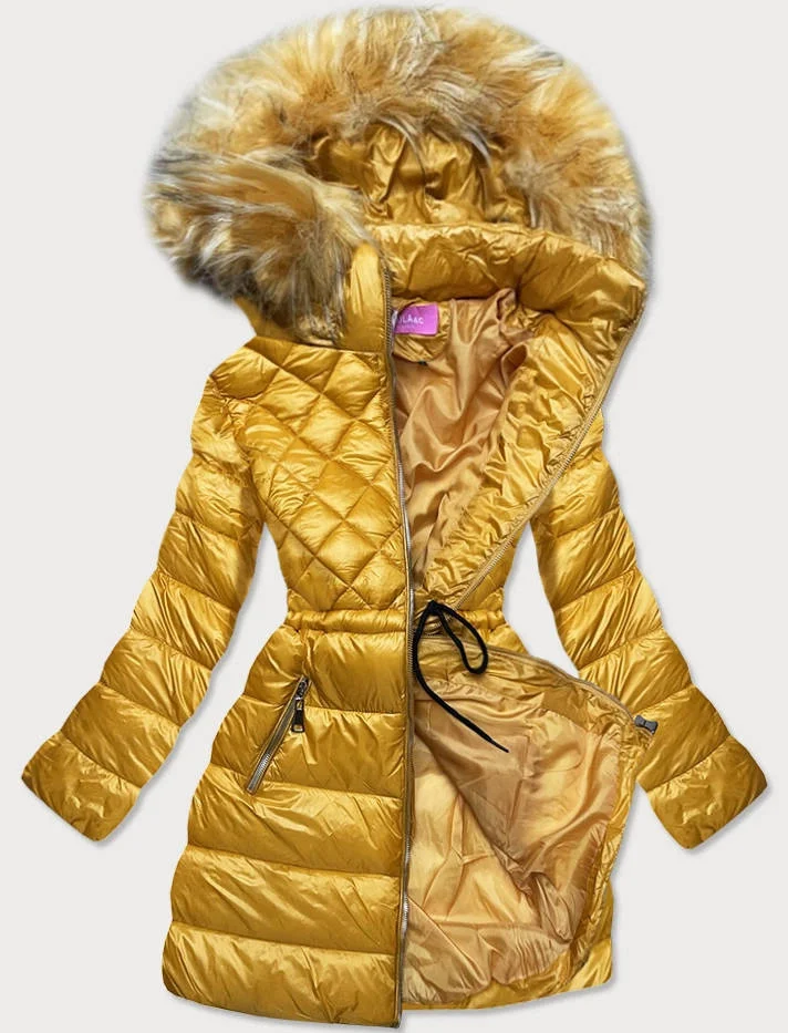 Žlutá dámská prošívaná bunda s kapucí (8957-c)