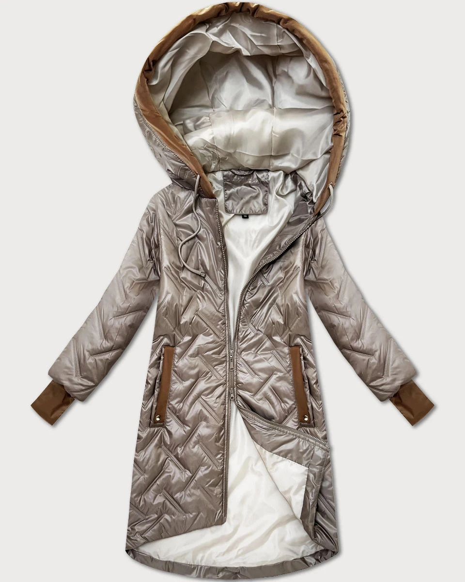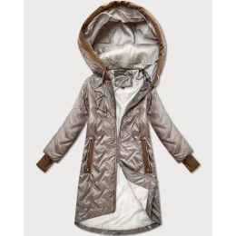 Béžová prošívaná dámská bunda s ozdobnými vsadkami (T2-2291#-62)