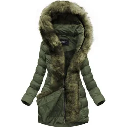 Prošívaná dámská zimní bunda v khaki barvě s kapucí (w749-1)