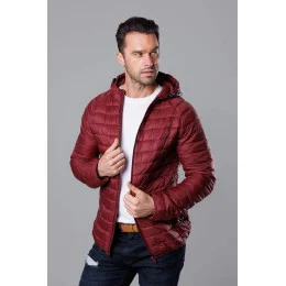 Pánská prošívaná bunda ve vínové bordó barvě s kapucí (HM112-6)