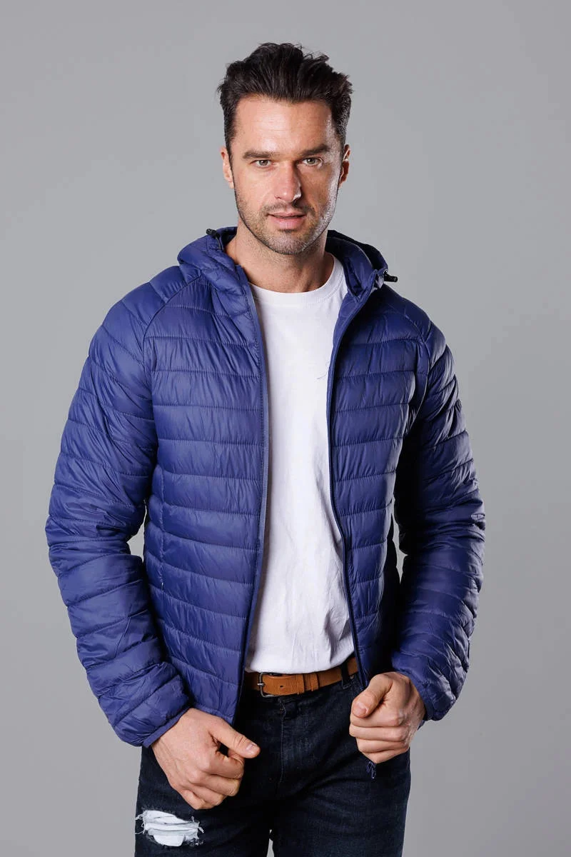 Modrá pánská prošívaná bunda s kapucí (HM112-50)