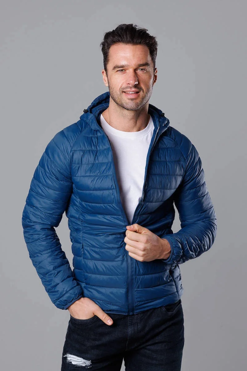Tmavě modrá prošívaná pánská bunda s kapucí (HM112-55)