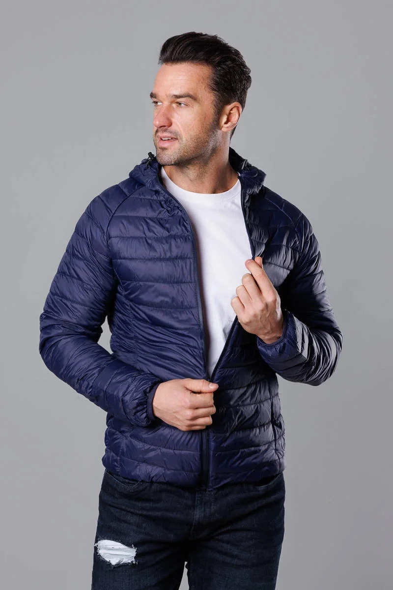 Tmavě modrá pánská prošívaná bunda s kapucí (HM112-4)