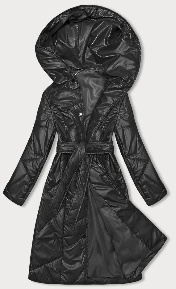 Bunda má jednoduchý střih, je lehce zateplená, má pásek pro zavazování, dvě kapsy bez zapínání a zapíná se zlatými patentkami. Model má kapuci, kterou není možné odepnout. Bunda má délku do poloviny stehen.