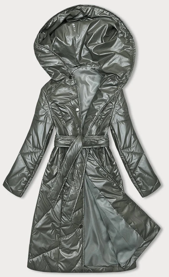 Prošívaná bunda v khaki barvě na patentky (B8179-11)