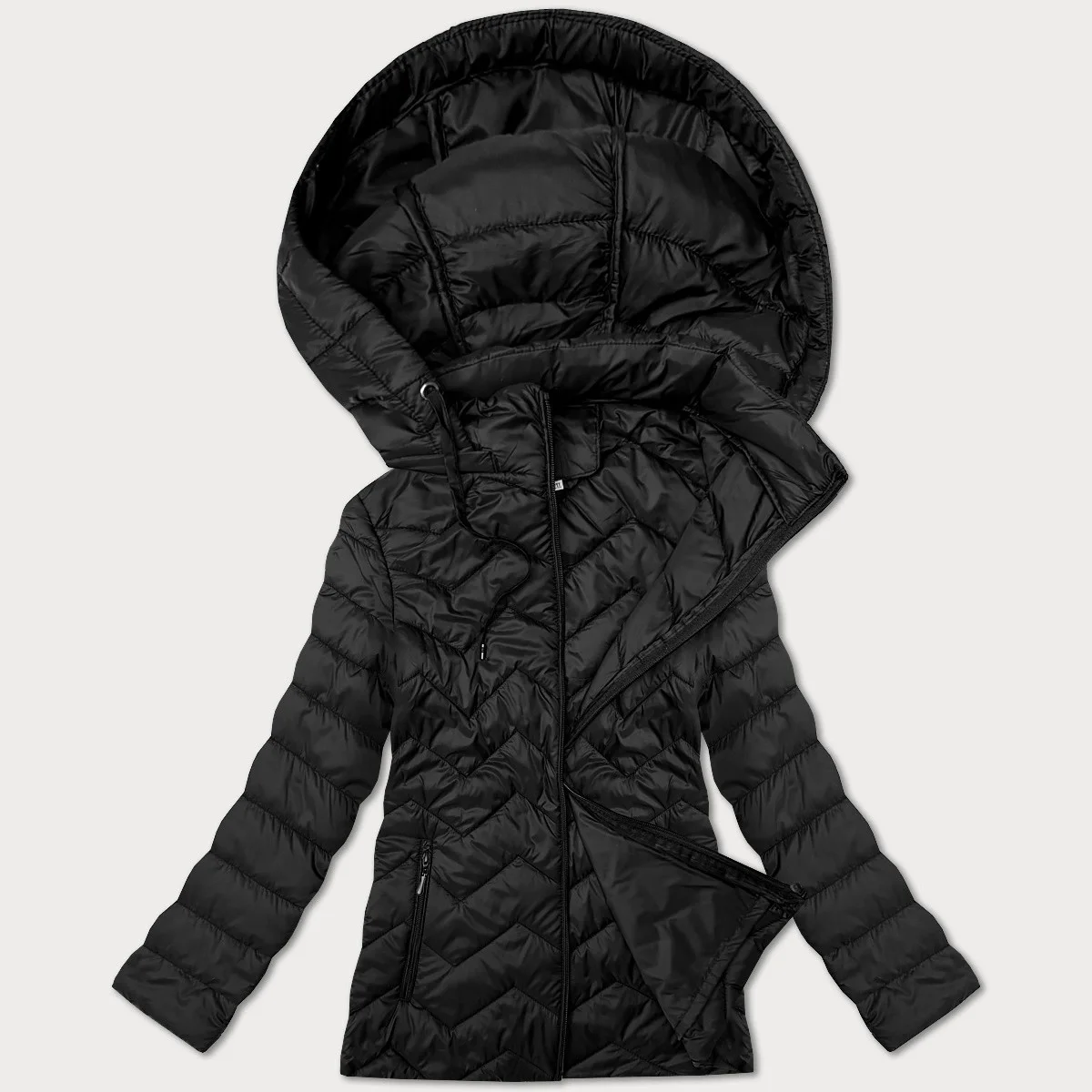 Černá dámská prošívaná plus size bunda s kapucí J Style (16M9267-392)