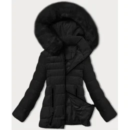 Černá dámská prošívaná bunda pro přechodné období s kožešinou u kapuce S'west (B8301-1)