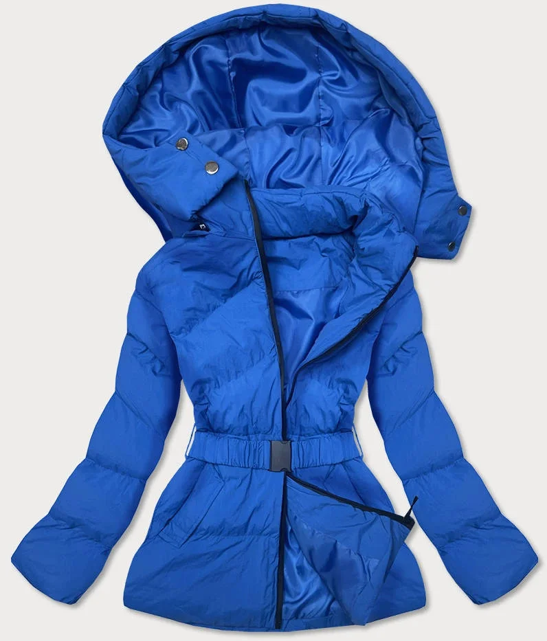 Dámská prošívaná bunda v chrpové barvě s opaskem pro přechodné období (23060-3)