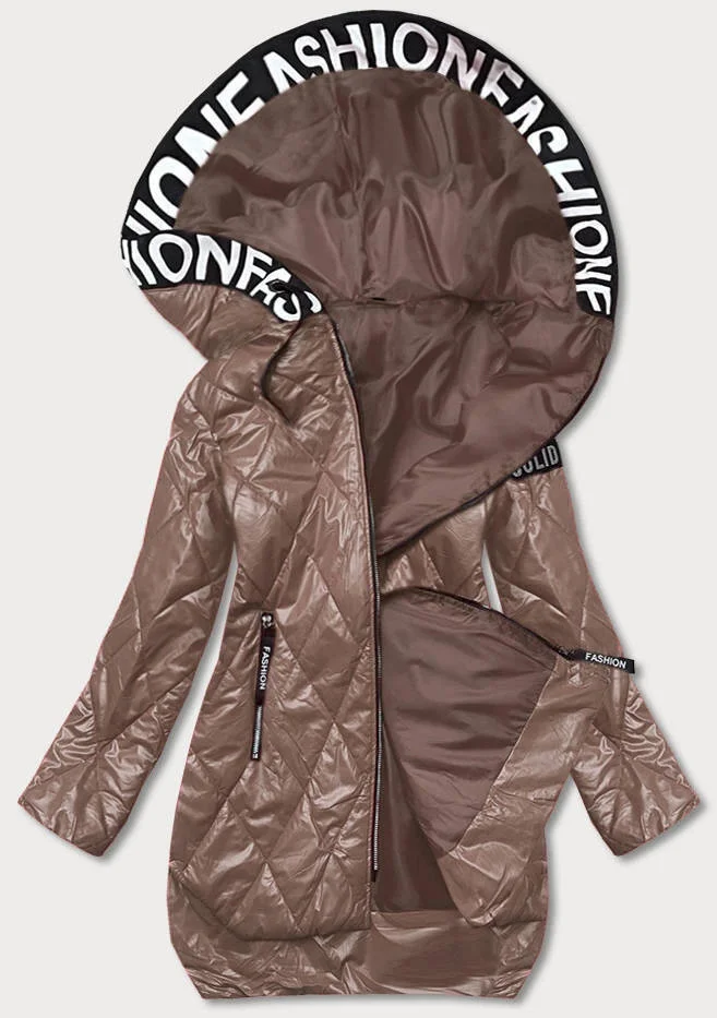 Prošívaná bunda v barvě cappuccino s kapucí (B8082-12)